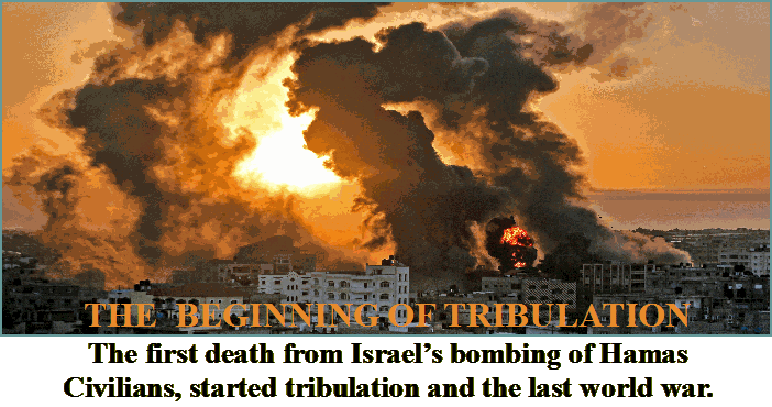 That day, will be a day of wrath-- a day of distress and anguish, a day of trouble and ruin, a day of darkness and gloom, a day of blackness, a day of trumpet and battle" (Zephaniah 1:15-16) Mark 24:21 Then shall be a great tribulation, as was not since the beginning of the world to this time. Throughout Scripture, the tribulation is associated with the day of the Lord, that time during which God personally intervenes in history to finish His plan. (Isaiah 2:12; 13:6-9; Joel 1:15; 1 Thessalonians 5:2). It is referred to as "tribulation in the latter days" (Deuteronomy 4:30, ); the great tribulation, which refers to the intense second half of the seven-year period (Matthew 24:21); "a time of distress" (Daniel 12:1); and "the time of Jacob's trouble" (Jeremiah 30:7). Hosea 9:7 Israel Rejected the True Prophets. The prophet says, "Israel, learn this: The time of punishment is here". "It is the time to pay for the evil things you did." The people of Israel say, The prophet is a fool. This man of God's Spirit is crazy. The prophet says, "You will be punished for your sins and for your hate." Matthew 27:22, during Jesus' so-called trial, Pilate asks the crowd, What shall I do with Jesus, who is called the Messiah?" The crowd answers, "Crucify him!" Pilate proclaims Jesus' innocence, but "they shout all the louder, 'Crucify him!'" Pilate washes his hands, declaring himself to be "innocent" and telling the crowd that Jesus' death "is your responsibility!" And the mob accepts, shouting the chilling words, "His blood is on us and on our children!" This is the state of Israel today. For Israel to hear His word or see "His Truth" They would need the Holy Spirit to guide them, Jesus is the Holy Spirit. They see only the old promises God gave them over the years before Jesus. The times God promised them victory over their enemies. They quote these now, trusting that God will save them again. With the birth of Jesus, all old promises are canceled. (the veil was torn, in the temple). We are in the new testament, they have only the old testament and God's old promises. This is the sin of pride. They are ignoring Gods sixth commandment about murder. They feel free and justified to murder, even small children, in the name of their God.. This will split the whole world, starting with the churches, governments, even families will be split as the death toll rises. Fear not, Jesus will be there to offer salvation to them. Israel will mourn when they see "the one they have pierced." Zechariah 12:10 We must do as the apostle Paul did. Pray for the salvation of Israel. Romans 10:1