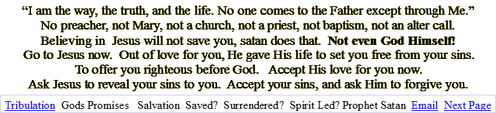 Satan's Role in the World System Today We know, we are of God, and the whole world is in the power of the evil one. (1 John 5:19) Despite the existence of countless political, cultural, and social entities in the world, there are in reality only two realms. It is the comforting privilege of those truly born again believers, in addition to having eternal life, answered prayer, and victory over sin, to know they belong to God. Though they exist in this world, they are not part of it (John 15:19; 17:14); they are children of God (John 1:12-13), "aliens and strangers" (1 Peter 2:11; cf. 1:1, 17; 1 Chron. 29:15; Ps. 119:19; Heb. 11:13), whose true citizenship is in the New Israel, through the forgiving of sins by Jesus. On the other hand, the whole world, it's politics, economics, education, entertainment, and, above all, it is religion that is under the power of the evil one. The evil world system is hostile to God and believers (John 15:18-19), as John noted earlier. It takes it's cue from it's ruler, Satan (John 12:31; 14:30; 16:11; cf. Eph. 2:2; 6:12), the archenemy of God and His people. Because the world is completely under satan's influence, believers must avoid being contaminated by it (2:15-17; cf. James 1:27). There is no middle ground, no third option. Everyone is part of God's kingdom, or Satan's. In the words of Jesus, "He who is not with Me is against Me; and he who does not join with Me, scatters" (Luke 11:23). We wrestle not against flesh and blood, but against principalities, against powers, against the rulers of the darkness, against spiritual wickedness in high places. (Ephesians 6-12) The high places are the churches! satan's religion, promised by the disciples, started in Rome and rules the world today! The worship of the sun assumed an entirely different character with the later importation of various sun cults from Syria. The Roman emperor Elagabalus (reigned ad 218-222) built a temple to him as Sol Unconquered on the Palatine and made his worship the principal religion at Rome. The emperor Aurelian (reigned 270-275) later reestablished the worship and erected a magnificent temple to the sun in the Campus Agrippae. The worship of the sun as special protector of the emperors and of the empire remained the imperial religion until it was accepted by Christianity. The Sabbath was changed to Sunday. From sun God from Syria to Rome to the world, the disciples warnings of satan's world rule was complete. The whole world is in the power of the evil one". (1 John 5:19)